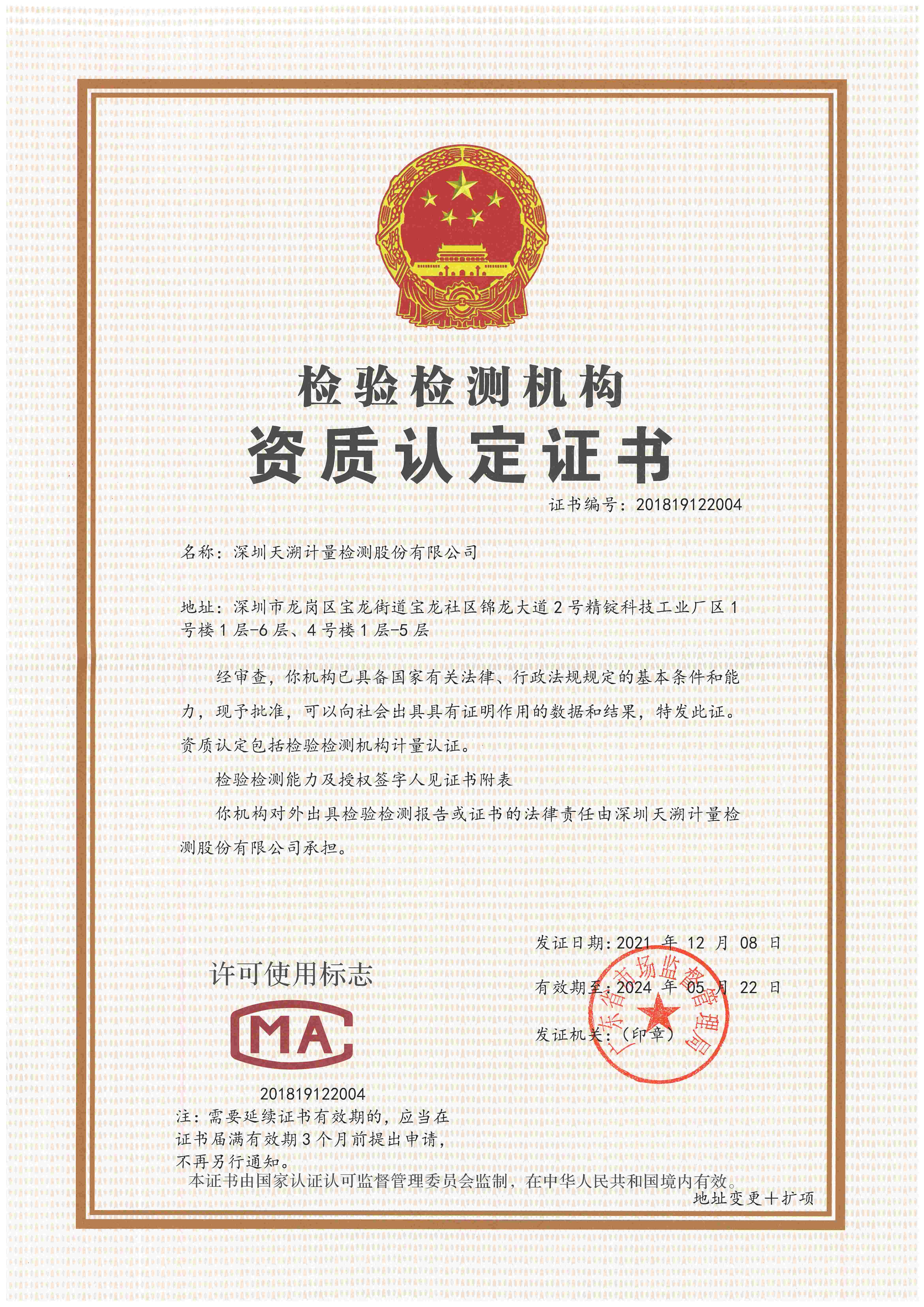 檢驗檢測認定證書